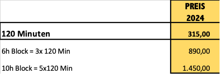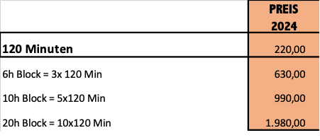 erreichen wollen. Die Bezahlung des Pakets erfolgt beim ersten Termin. |